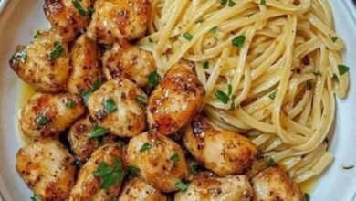 معكرونة بالجبن والليمون مع الدجاج بالزبدة والثوم