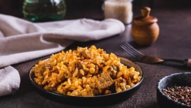الأرز الشرقي الحار مع اللحم المفروم