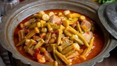 البامية باللحم والكزبرة
